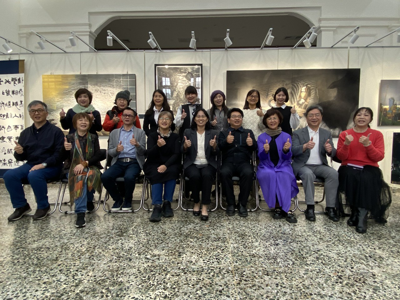 彰化縣文化局張雀芬局長(前排右五)及國立新竹生活美學館葉館長(前排右四)、磺溪美展得獎者及與會貴賓大合照