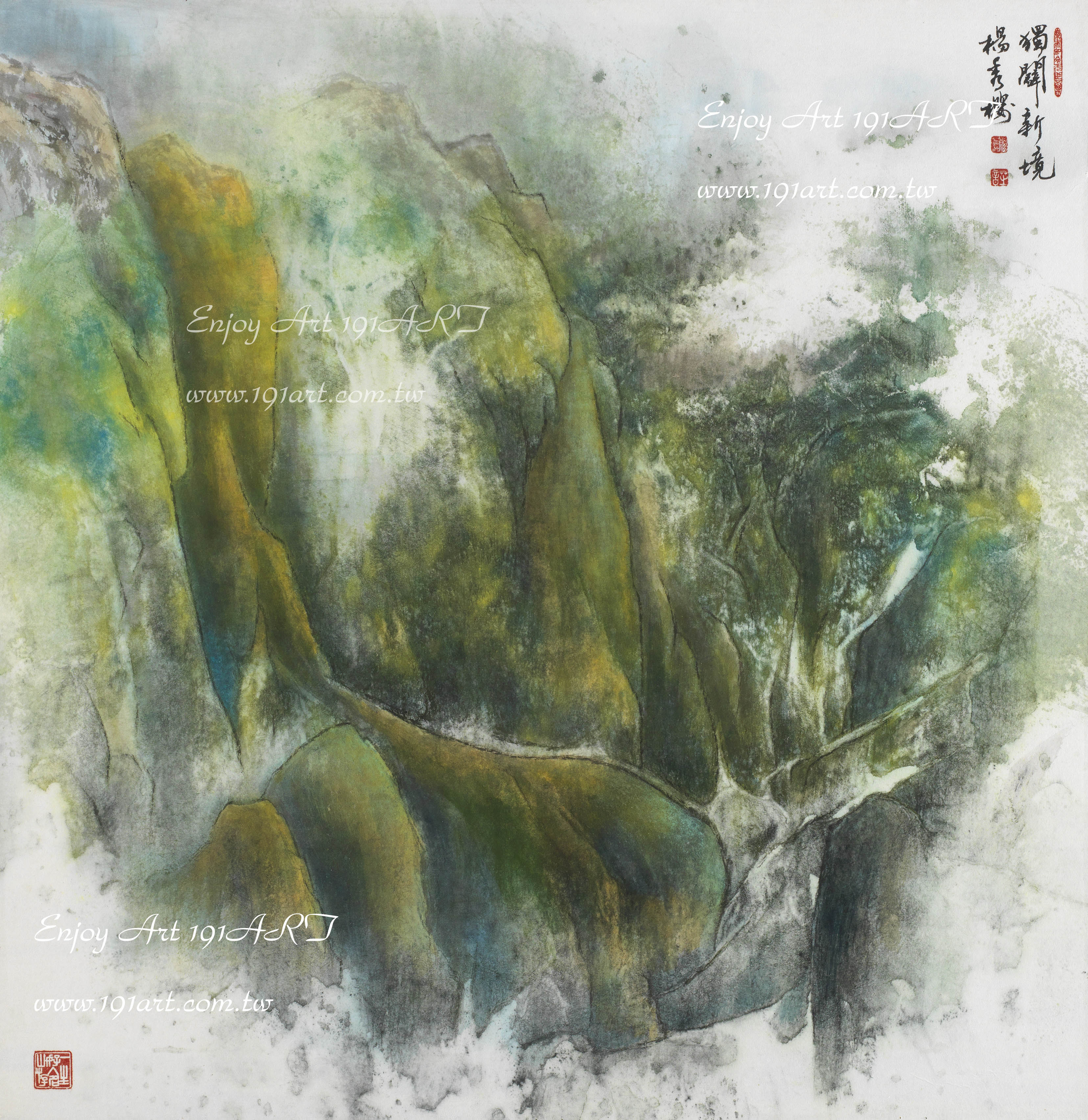 這是運用獨特拓染技巧,然後以精緻的線條、渲染、上色,完成的層層山境!