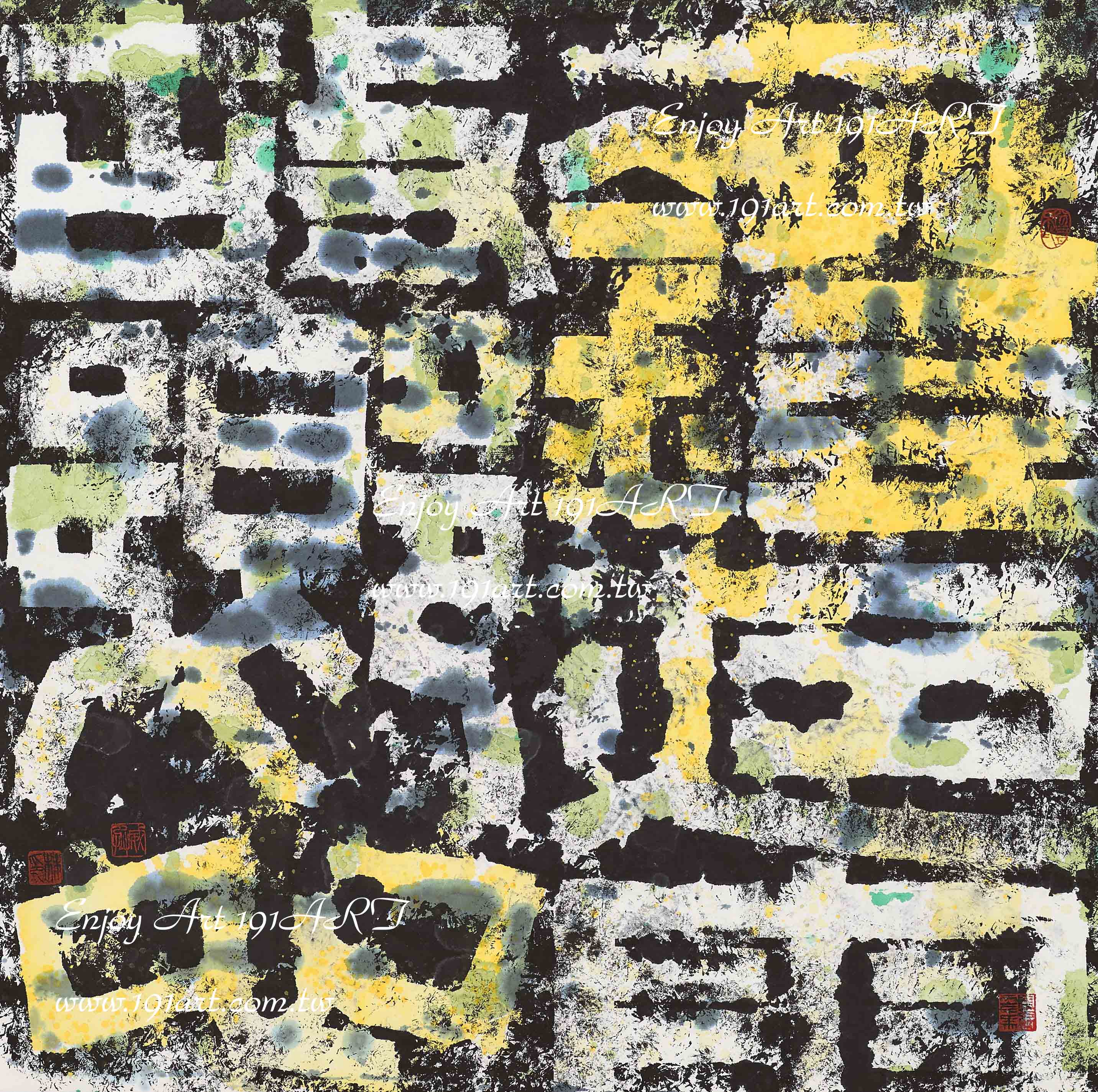 此作-一燈夜雨故鄉心,以篆刻布排的方式,加以強調字形的造型表現,搭配鮮豔的色彩,希望能給人強烈的視覺效果與生命力。其文字內容表達一種思鄉情懷,藉由黃色調的畫面安排,營造出一種溫暖的氛圍。
