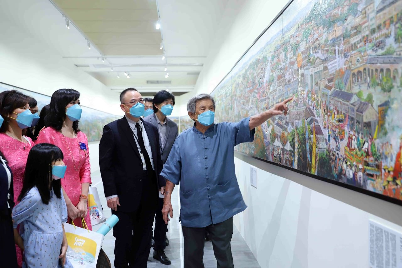 藝術家林智信(右1)為文化部政務次長蕭宗煌(右2)等貴賓導覽作品《芬芳寶島:憶象1950年代的台灣》