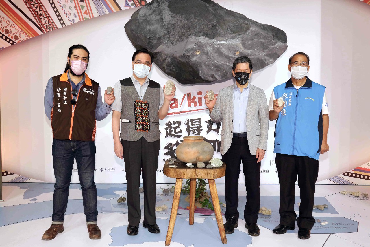 左起立法委員伍麗華代表法隆.星降、原住民族委員會主任委員夷將・拔路兒Icyang・Parod、文化部長李永得、立法委員廖國棟合影