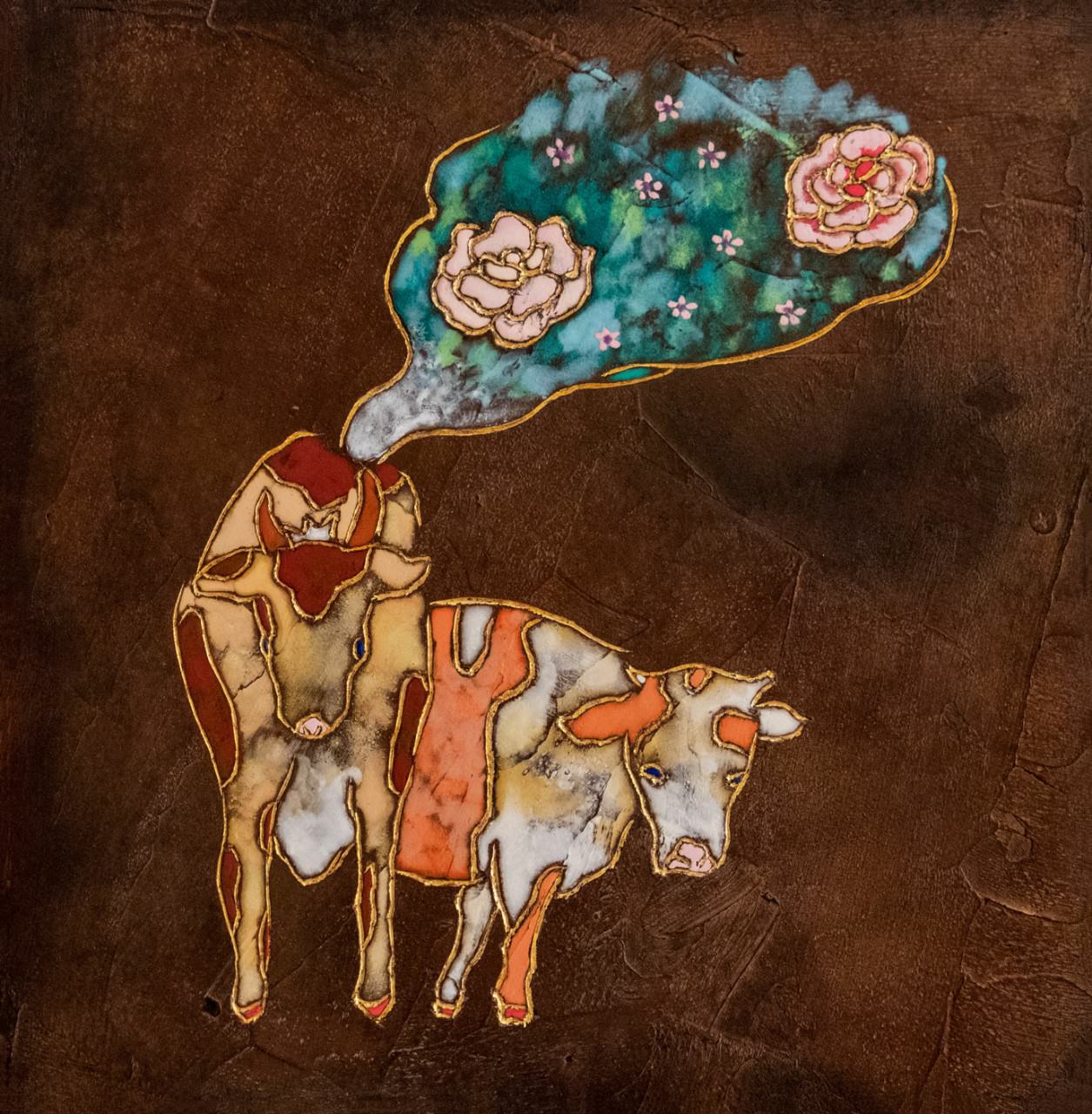 夏愛華_彷彿是魔法_杉木拼板、漆、金箔、岩彩_H60xW40xD5 cm_2021