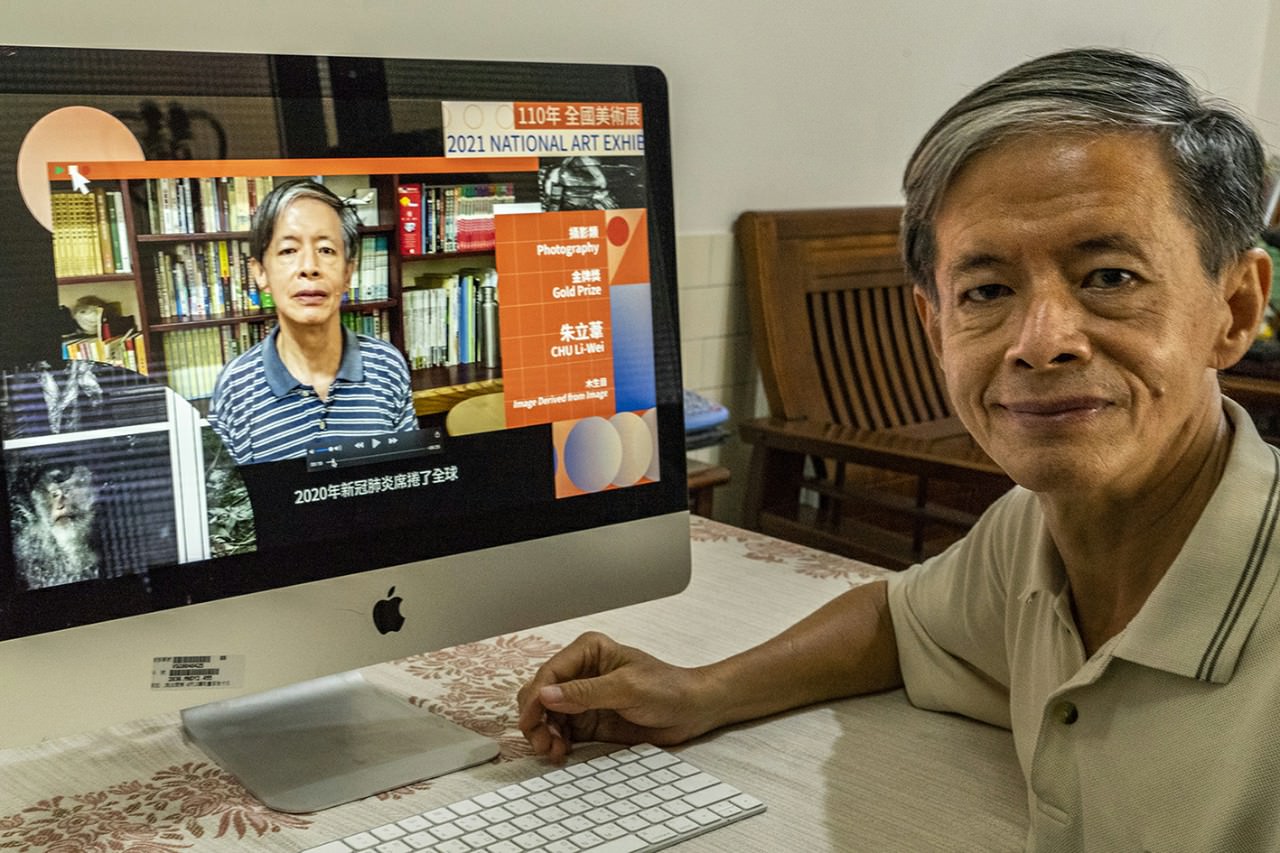 攝影類金牌獎得獎者朱立葦與線上頒獎典禮一起同框