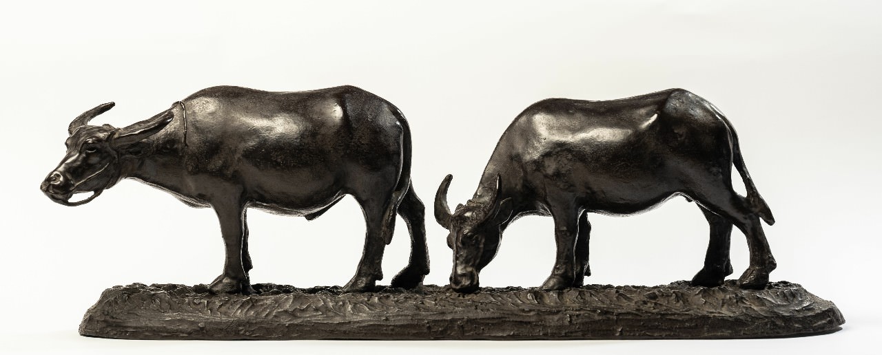 「牛圖」凝聚了李可染近半世紀的審美理想和藝術追求,為向這位華人藝術巨擘致敬,美術館這次不僅特別微型展出曾明男、張舒嵎、章羽承三位陶藝家一系列拙趣、充滿感情的牛雕塑,展開與李可染跨世代的藝術對話!也隆重介紹被譽為台灣第一位雕塑家黃土水的水牛作品《情侶》,期盼藉著黃土水與李可染兩位大師水牛群像創作裡傳達出的田園詩意與安定力量,給予社會最大的祝福和撫慰!