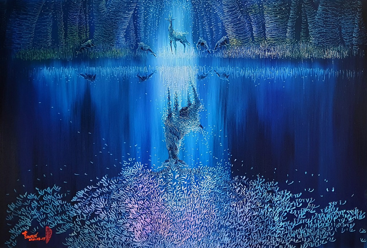 此次展覽特別與匠心獨具的藝術家郭艶雅聯合展出,她以創新思維加上溫潤的色彩,呈現溫暖的對話,透過用筆、佈局及色彩的運用將對生命、自然的觀察與思維,融合創新溫潤的藝術巧思揮灑出自己的一片天空。