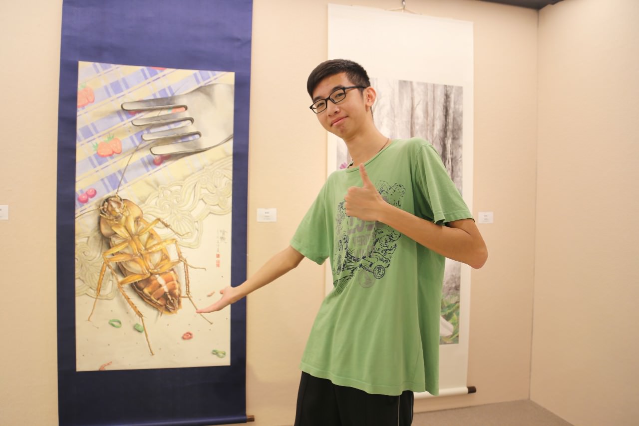 蔡丞琳作品「小心」,氣球象徵心中的各種夢想,或許會因險惡的現實而破滅,但也因此成長,如尖刺中開花的仙人掌,度過難關終能苦盡甘來。林湘蓁以「長樂」表達遭遇再多的困難,都能以快樂的心情解決。吳佳達以獨特視角創作「餐點」,跳脫一般觀點,蟑螂就如食用性昆蟲一樣的蛋白質而已。