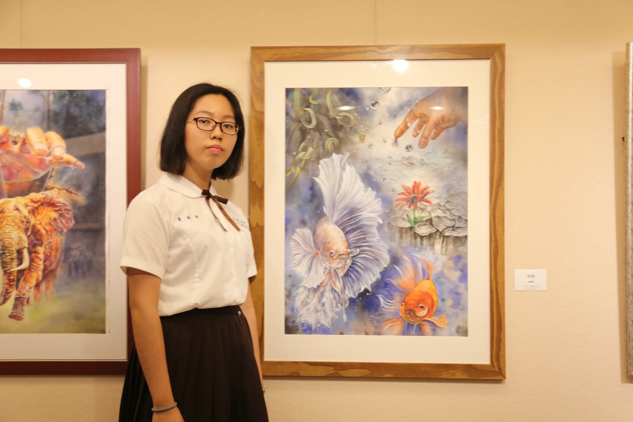 張而驊「課間腦動淨土」,在無聊的上課時間裡發呆神遊,沉浸在自己的快樂世界。黃珮軒的「頑強」,與鬥魚禁錮生命牢籠的金魚,為了生存奮力戰鬥,勇敢掙脫束縛的枷鎖,尋找到人生亮點的花朵,營造一片絢麗光彩的未來。