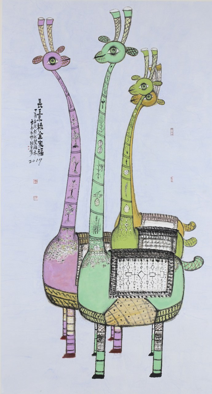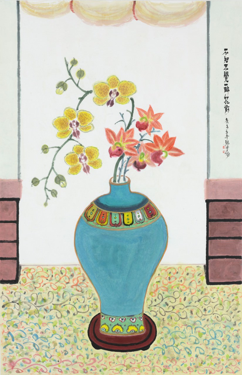 張夢陽雖非科班出身,但早年習畫時遍臨近現代名家墨跡,心摹手追,浸淫日深,根基也益為穩固;十多年來,潛心讀書、作畫、臨帖、寫字,其用功之勤,著力之深,已到廢寢忘食的地步。張夢陽還有個特殊身分–「聞名畫廊」主人,因水墨大家鄭善禧老師二三十年來,幾乎每週固定前往該畫廊「報到」,或分享生活點滴、或寫字作畫,近水樓台,張夢陽無形中成為鄭老師的私淑弟子,在創作的畫技與風格上深受啟發。