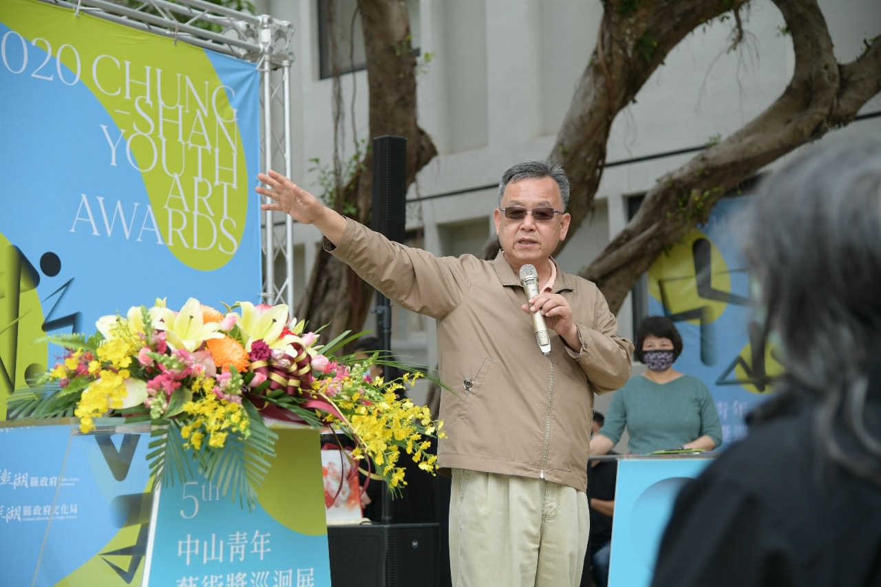本屆「中山青年藝術獎」評審團代表蘇憲法教授致詞時表示,自己是「中山青年藝術獎」前身「全國青年學生書畫比賽」大專美術科系組第一屆油畫類首獎得主,與中山青年藝術獎具有深厚的淵源,他鼓勵年輕藝術家堅持理想持續創作。