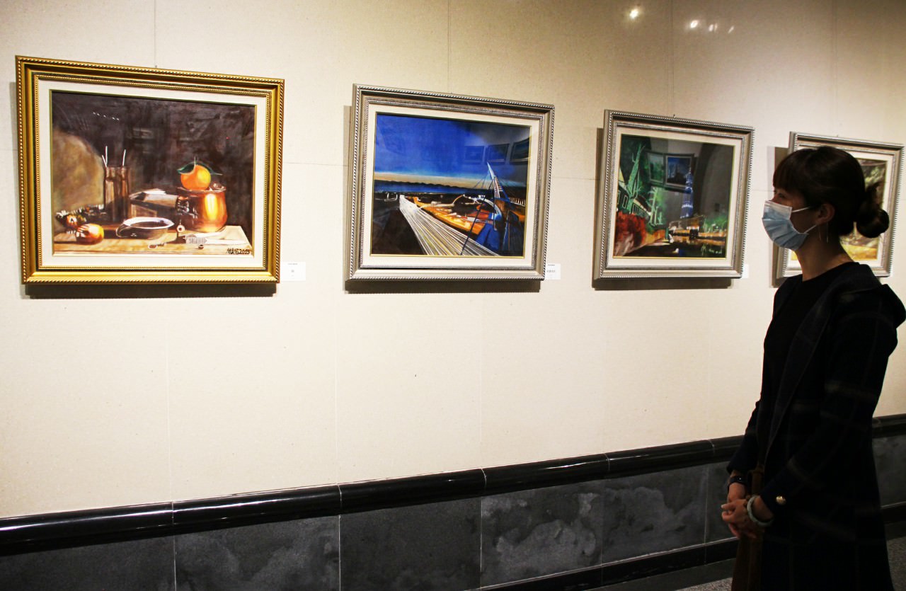 民眾趁假日來港區藝術中心欣賞陳景德油畫個展