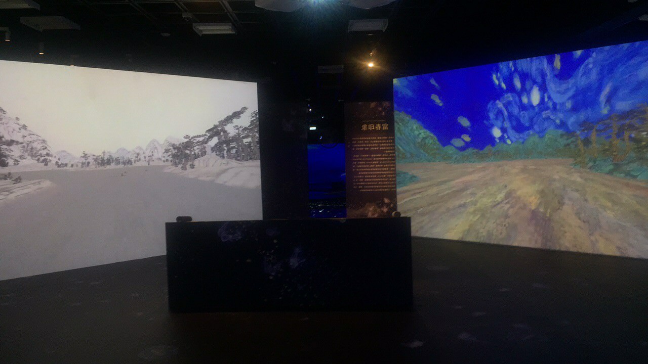 展覽亮點首推「富春印象」沉浸式劇場,以故宮典藏〈富春山居圖〉為基底,將元代畫家黃公望探索自然造化後的理想山水形象,透過人工智慧學習歐洲畫壇巨匠莫內、塞尚及梵谷畫風後,以電腦重新繪出當代魔幻山水,引領觀眾欣賞東西方的繪畫特色。