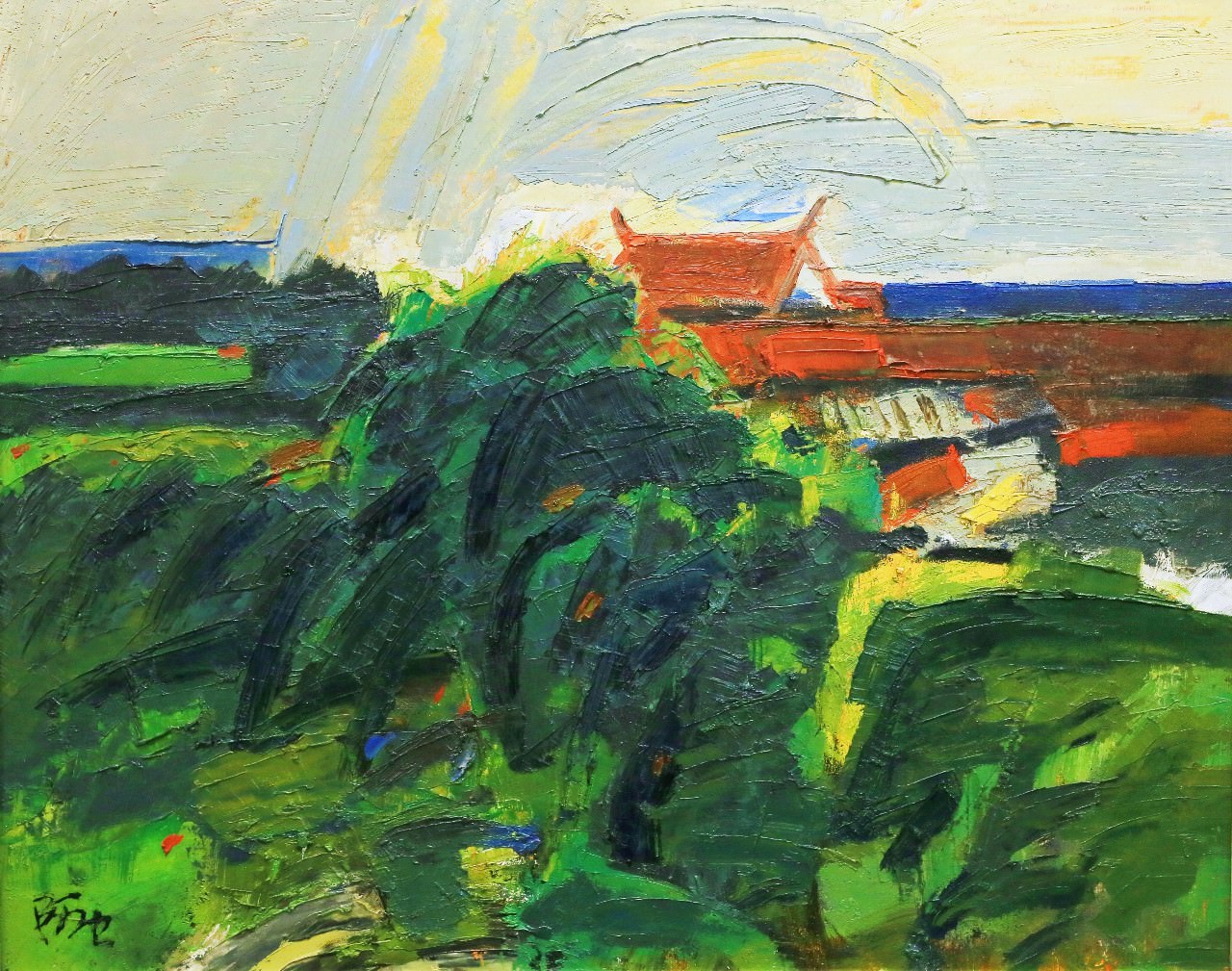 嚴以敬 紅樓夕照 1993年 75×60cm(22F) 油彩.畫布