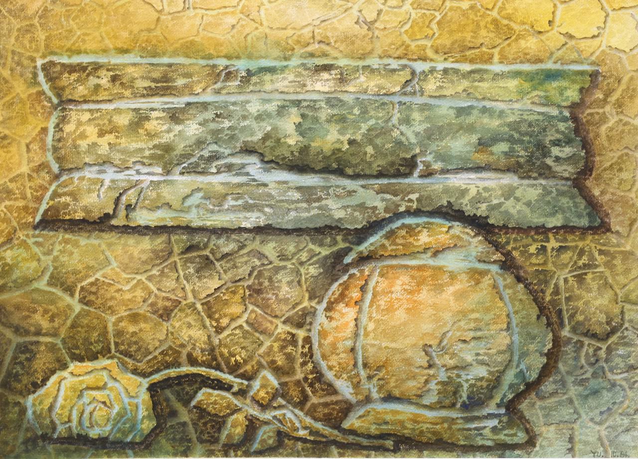 余元康 舊牆上的玫瑰 1984年 49×68.5cm 水彩.紙本