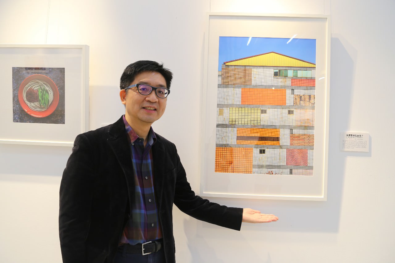 「蒙德里安在台灣?」以直線塊面的幾何拼貼手法,將臺灣特有的磁磚外牆融入蒙得里安風格學格,諷刺無所不在、雜亂粗陋的在地建築景觀。「高美濕地的夕陽」抽象簡潔的數位插圖形構風車與遊客,夕陽藍黃橘漸層萬變的華麗色調賦予仲夏度假風情。「炸醬麵?」常民飲食的炸醬麵不見自然食材,全以重金屬的塑化製品取代,藉以提醒大眾正視臺灣嚴重的食安問題。