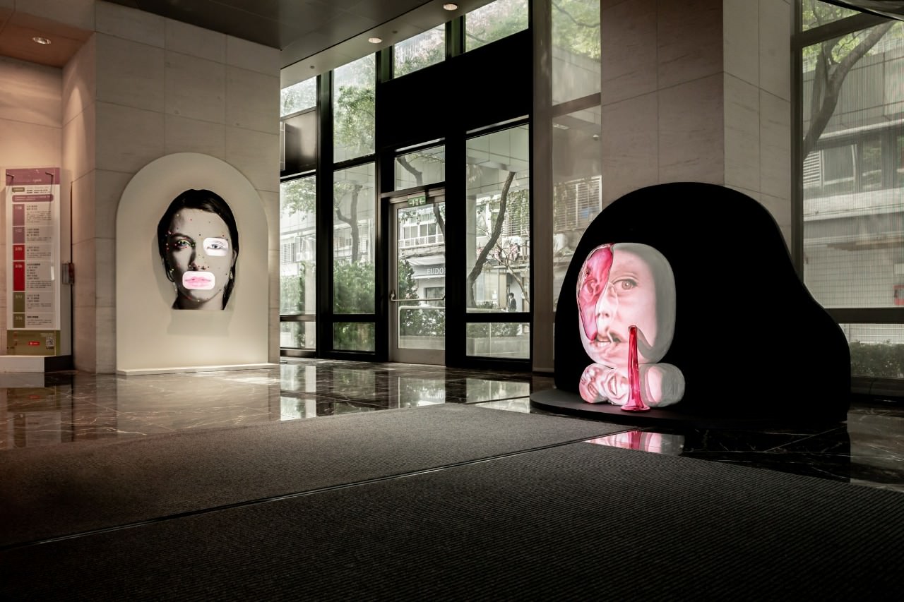 台新金控大樓展覽《湯尼.奧斯勒:水的記憶》,延續關注臉部辨識、演算法與人工智慧對身份、人的存在狀態與社會文化之影響等議題,結合了玻璃、水和電腦運算的多媒體影像雕塑裝置,如同具有生命彼此對話交談的魔幻奇石,表達與討論「水」這無處不在的物質如何作為我們信仰體系的載體。在光影、影像、科技、聲音與詩文的虛實交錯之間,開啟顯影空間神秘未知的可能。同時,台新總部大樓外也特別打造了以奧斯勒的經典作品作為靈感的大型窗貼佈置,透過明亮有趣的設計,呈現奧斯勒作品與仁愛圓環鄰里、市民朋友之間的幽默對視,為台北東區增添活潑歡欣的氣氛,傳遞湯尼.奧斯勒獨特的藝術語言。
