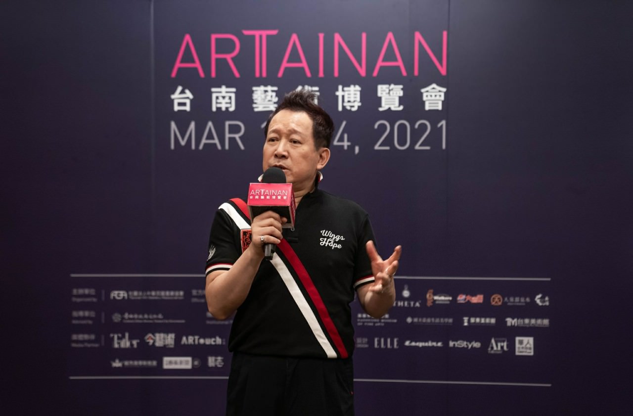 社團法人中華民國畫廊協會主辦的ART TAINAN 2021台南藝術博覽會(以下稱台南藝博),於3月11日在香格里拉台南遠東國際大飯店(以下簡稱香格里拉大飯店)B1金城廳舉辦展前記者會。台南藝博今年迎來歷屆最多56家展商,並選在香格里拉舉辦,結合臺南新藝獎共有63間展間,擴大為11樓至15樓的展覽規模,超過200位藝術家,帶來總計超過1800件的作品。記者會場貴賓如雲,臺南市市長黃偉哲、臺南市美術館榮譽董事長陳輝東、臺南市美術館董事蘇憲法、臺南市政府文化局副局長陳修程、國立臺南藝術大學校長詹景裕、億載會新任會長鍾杰霖、以及園區公會南科辦事處郭春暉處長等等,共同為ART TAINAN台南藝術博覽會揭開序幕。