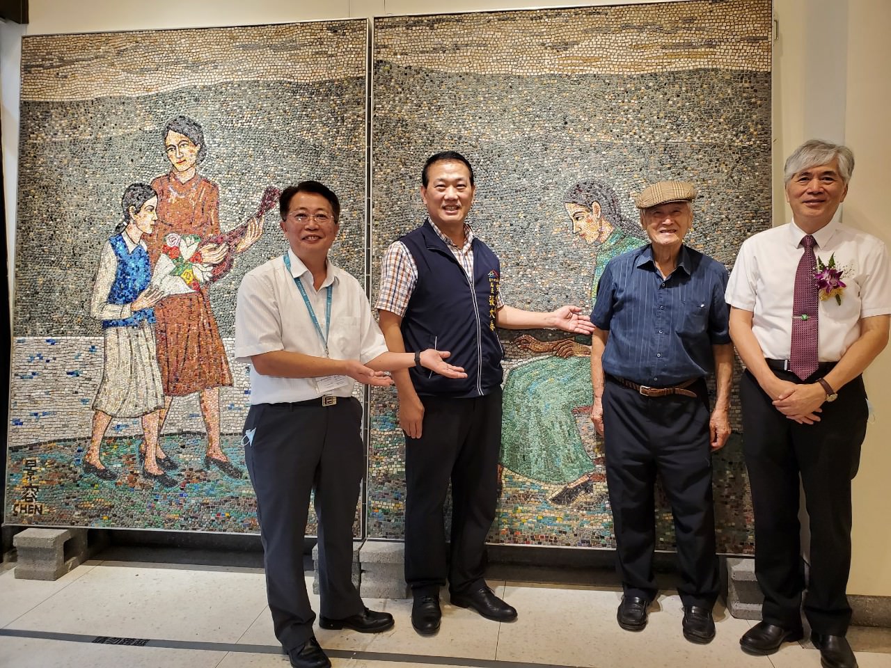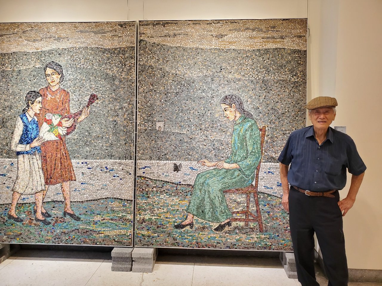 陳景容教授現場展示作工極其不易的巨幅馬賽克作品