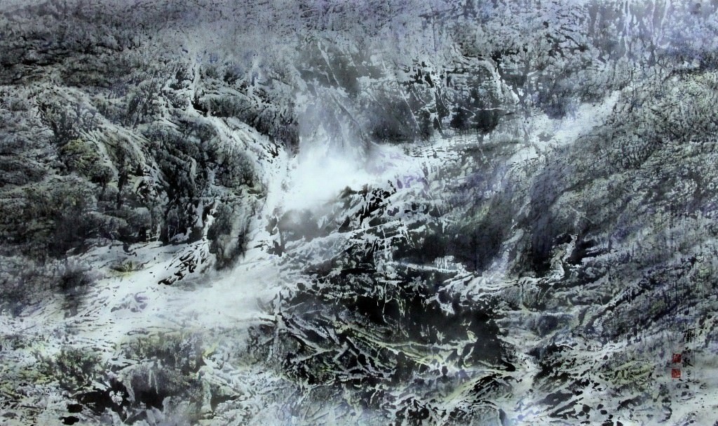 由於酷愛壯麗令人心礦神怡的高山流水,展出作品係以此為發想創作,包括山水組曲、雪韻系列等,藉由不同媒材技法創作,墨漬水紋不同樣貌呈現,在白線墨紋中再琢磨展現水墨新風貌,呈現出心中的意象山水。每件作品都期望讓人有如沉浸在浩瀚的大自然之中,忽而雲海彌漫,忽而水氣磅薄,時時又回到靜謐無聲之境,變幻莫測,讓人嘆為觀止。