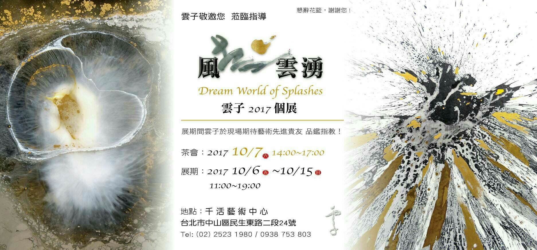 「破力水墨」:突破東方傳統的潑墨手法,大膽嘗試新材料與潑墨法的研創,雲子讓墨韻有著更瀟灑的力道,演繹出的作品極具想像力,更富靈動氣韻、奔放與精闢!