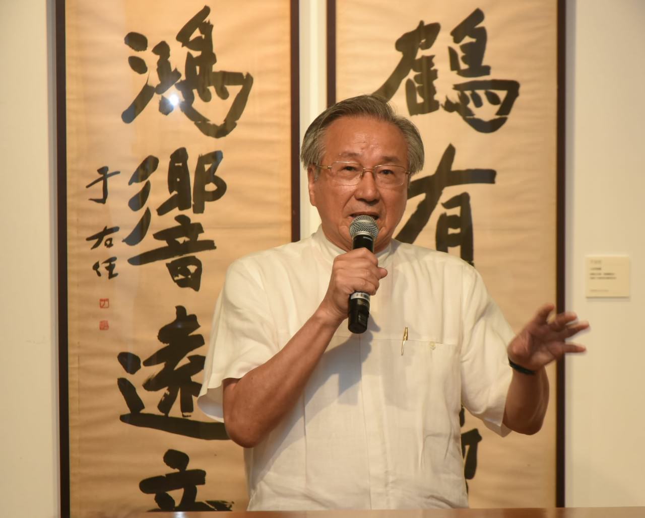 提供本次展出于右任先生作品的何創時書法藝術基金會何國慶董事長致詞時表示于右任先生對書法有非常重大的貢獻,據推估他題贈十萬餘幅書法作品給臺灣民眾,留下極為重要的文化資產。