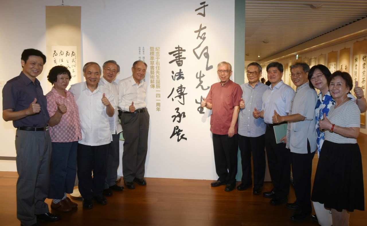 由文化部所屬國立國父紀念館與中華民國標準草書學會共同主辦的「于右任先生書法傳承展—紀念于右任先生誕辰141周年暨標準草書藝術薪傳」自7月18日至8月2日在該館博愛藝廊盛大展出,7月19日下午3時舉行開幕式,出席貴賓有中國書法藝術基金會連勝彥董事長、臺南市美術館黃光男董事長、何創時書法藝術基金會何國慶董事長、國立臺灣藝術大學薛平南教授、中華民國標準草書學會鄭錦章理事長、警察廣播電台宣介慈總台長及國立國父紀念館梁永斐館長等。國立國父紀念館梁永斐館長說明國父孫中山先生創建中華民國,在成就革命事業的歷程中,吸引許許多多志士參與救國救民的志業,志士中不乏詩文、書法造詣高超的英才俊彥,其中又以一代宗師于右任先生影響最為深遠。于右任先生早年參加同盟會辦報宣傳革命,民國20年2月就任監察院院長,直到民國53年去世,任職34年,是擔任最久的監察院長。