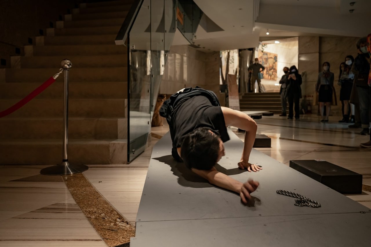 堤頂之星2.0入選展《觀測失效》開幕活動由表演者張猷琛以肢體、飾品撞擊作品步道產生互動聲響,並由混音師黃子定將聲響現場製作,為觀眾帶來一場即時聲響與舞蹈的精彩演出。