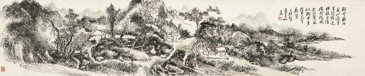 黃賓虹(1864-1955),《息茶庵圖卷》,設色紙本手卷,32.3X154公分(12¾X60⅝吋),1939年作,估價:港元2,000,000–3,000,000/美元260,000–380,000