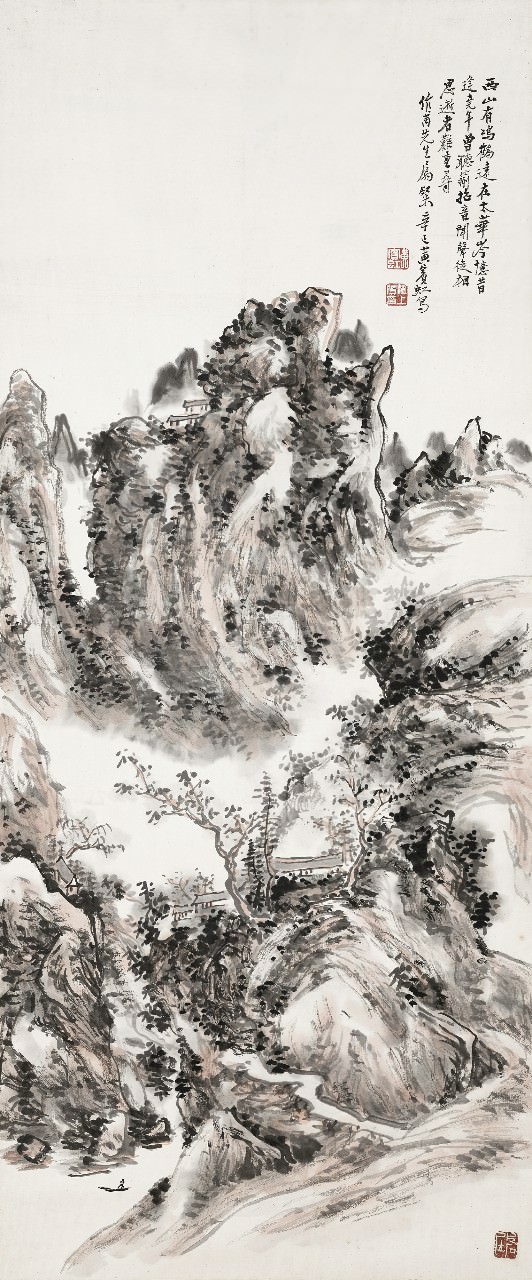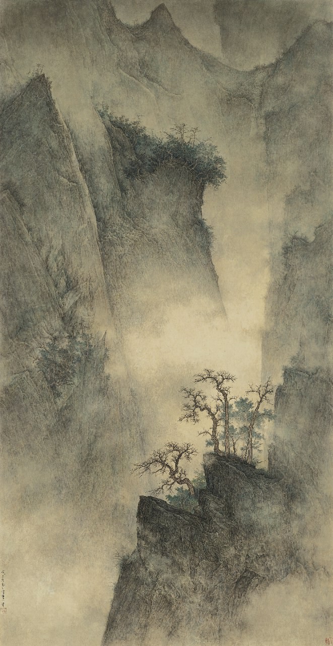 李華弌(1948年生),《層巒曉霧》,設色紙本 鏡框,188.5X97公分(74¼X38吋),2008年作,估價:港元 2,400,000–3,500,000 / 美元310,000–450,000