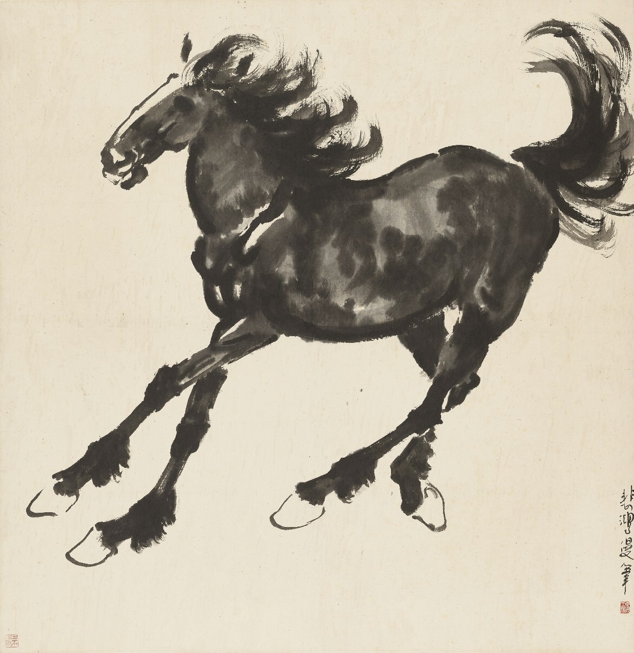 徐悲鴻(1895-1953),《奔馬》,水墨紙本 鏡框,111.5x108.5公分(43.x42.吋),估價:港元2,500,000–3,500,000/美元320,000–450,000