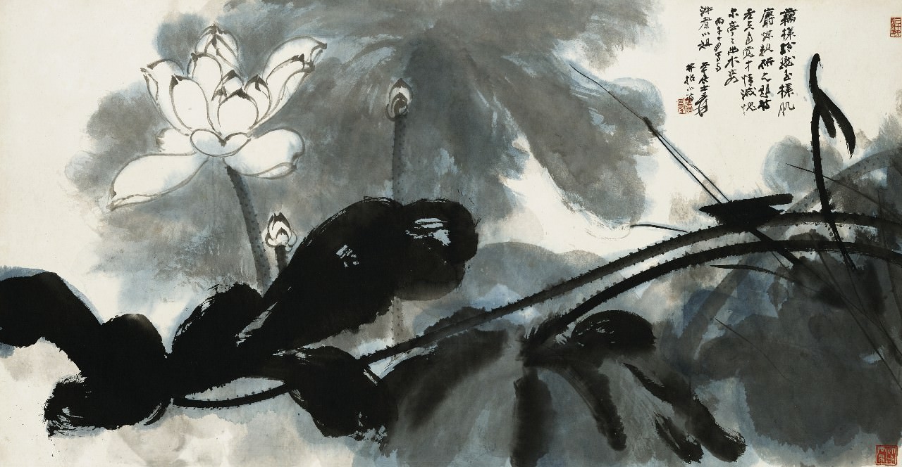 張大千(1899-1983),《風荷》,水墨泥金六折屏風,全幅156X349公分(61.X137.吋),1958年作,估價:港元16,000,000–26,000,000/美元2,100,000–3,300,000