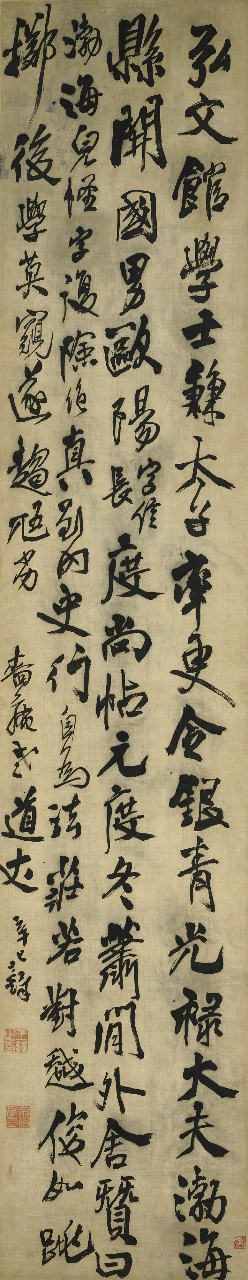 明 王鐸行書《米芾跋歐陽詢〈度尚帖〉》,水墨綾本 立軸,242X47公分(95¼X18½吋),1641年作,估價:港元4,500,000–5,500,000/美元580,000–710,000