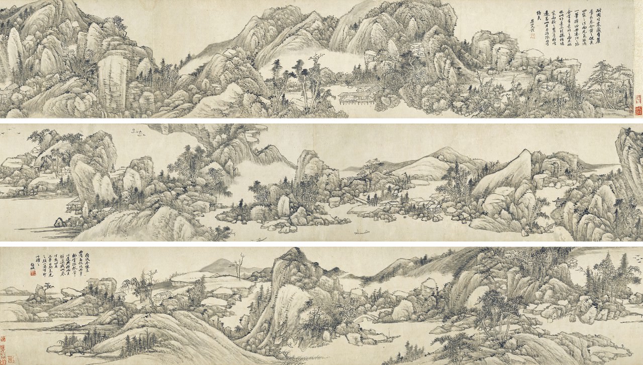清 錢維城《倣元四家山水》水墨紙本 手卷,33X523公分(13X206吋),1766年作,估價:港元8,000,000–10,000,000/美元1,000,000–1,300,000