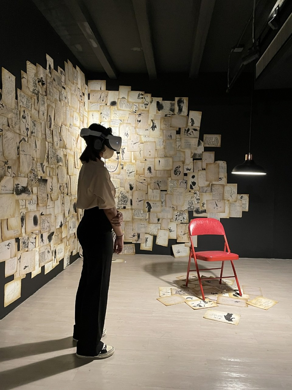 泰國觀眾聚精會神的體驗臺灣VR作品「留給未來的殘影」