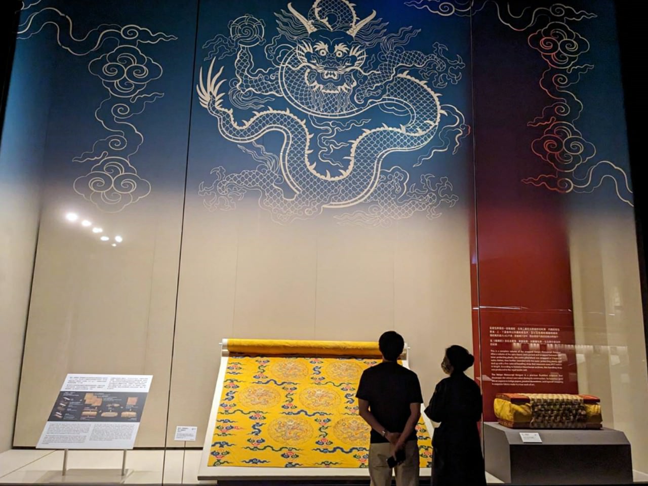 故宮南院「包羅萬象-院藏亞洲織品展」,焦點展件《龍藏經》及第3層經衣。