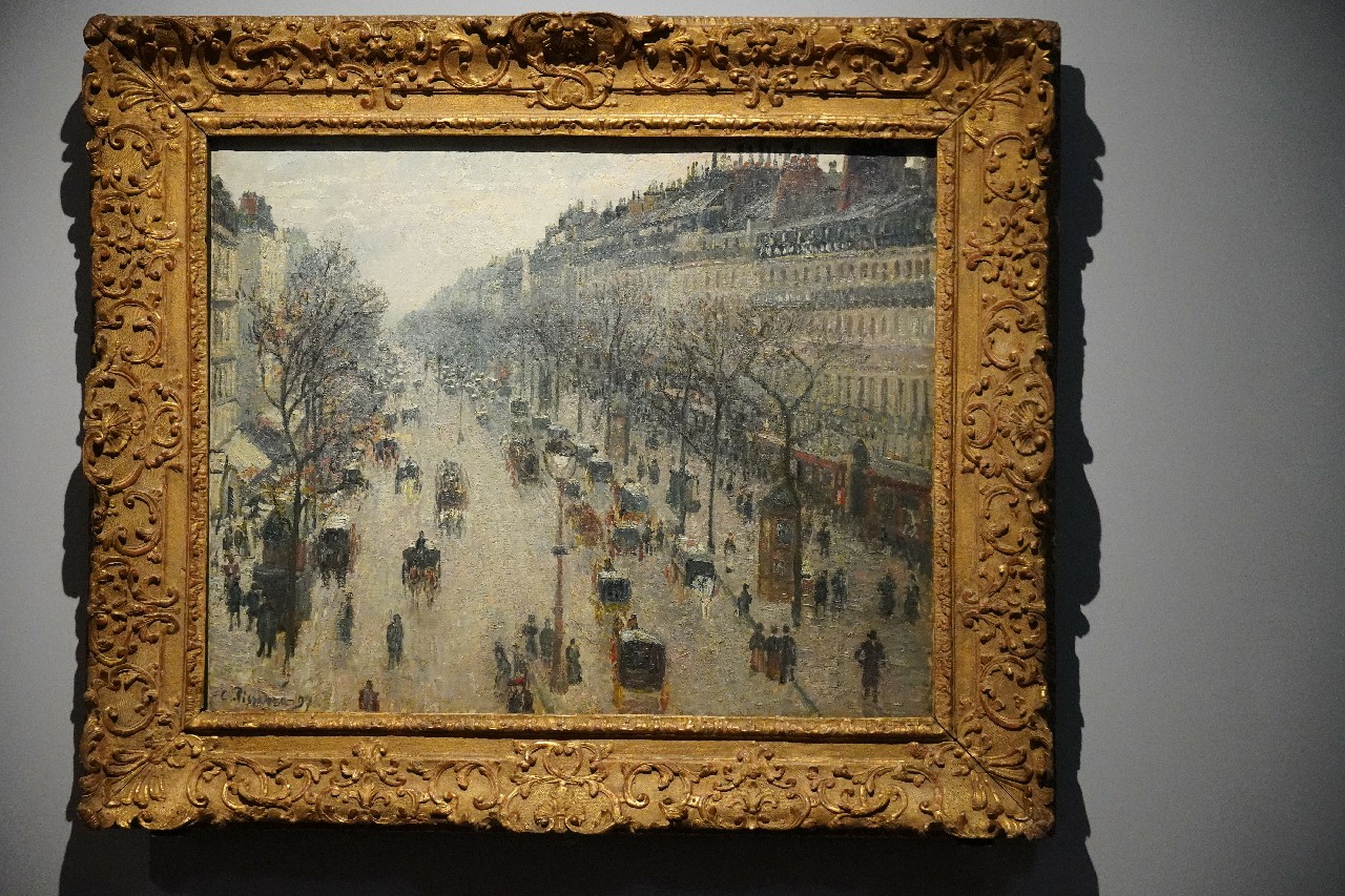 畢沙羅〈冬天早晨的蒙馬特大道〉捕捉都市繁忙的冬日景象。(藝文報報/採訪拍攝)