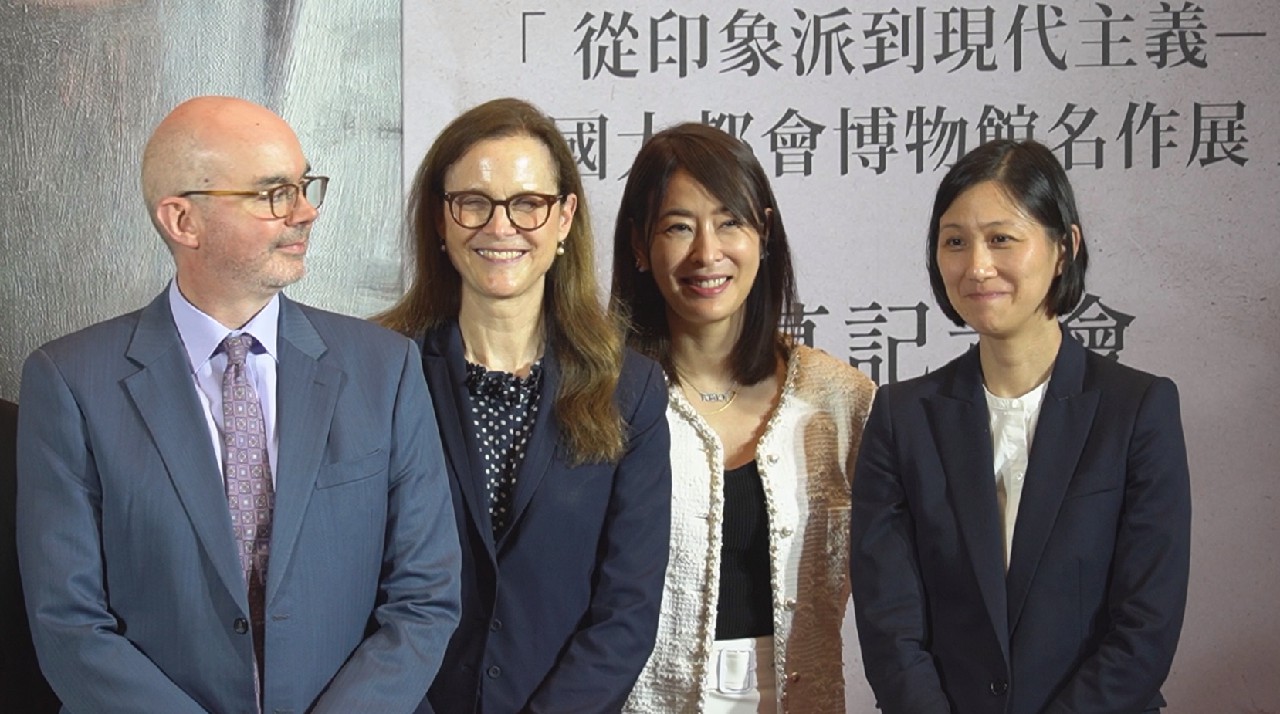 左起:AIT美國在台協會谷立言處長、美國大都會博物館展覽暨國際倡議副總監Quincy Houghton、臺北101董事長賈永婕、美國大都會博物館亞洲藝術部副主任馬唯中。(藝文報報/採訪拍攝)