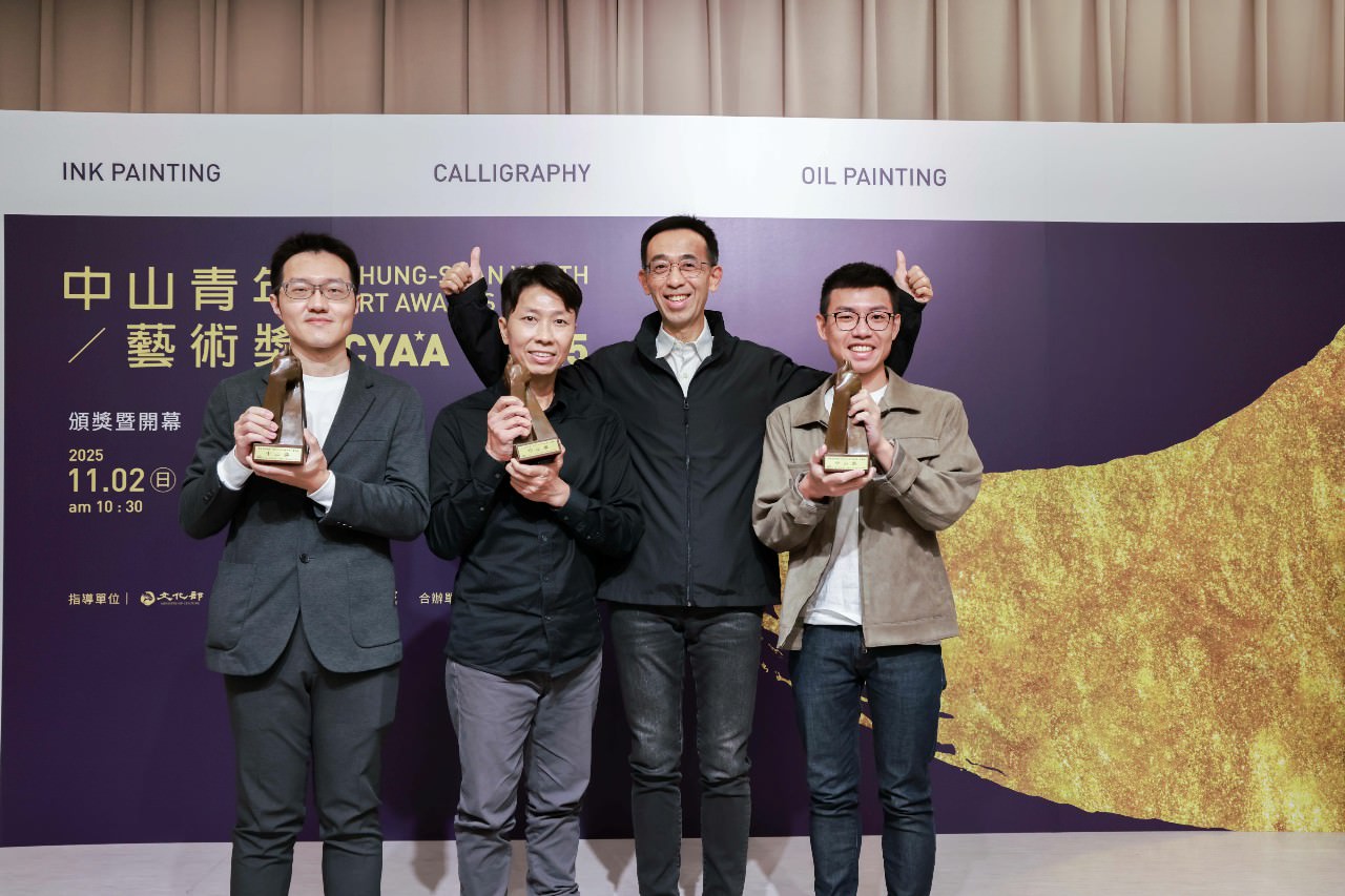 這項「接軌市場」的實質效益,也獲得本屆「中山獎」得主的一致肯定。水墨類首獎得主 柯驎晏 坦言,中山獎對他極具意義:「它是一個有年紀限制的比賽,希望早點拿到。除了獎金能支持創作生活外,它提供的藝博會和國父紀念館個展機會,都為我們創作者帶來極大的曝光。」油畫類首獎得主 林正哲 則分享了創作與生活的平衡:「我參加過許多屆,一直挑戰自己找到能與觀者共鳴的題材,這次挑戰成功了!教職以外的時間能思考創作,這是一個很好的生活上調劑。」書法類首獎得主 簡宏名 則認為,這個獎項是對傳統根基的肯定:「這次獲獎是評審對我們深入古典傳統功夫的肯定。未來希望除了精進傳統,還能在當代藝術創作中反映生活與社會現象。」三位得主的心聲,具體勾勒出中山獎在鼓勵創作、支持生活、乃至銜接市場上的「三位一體」功能。