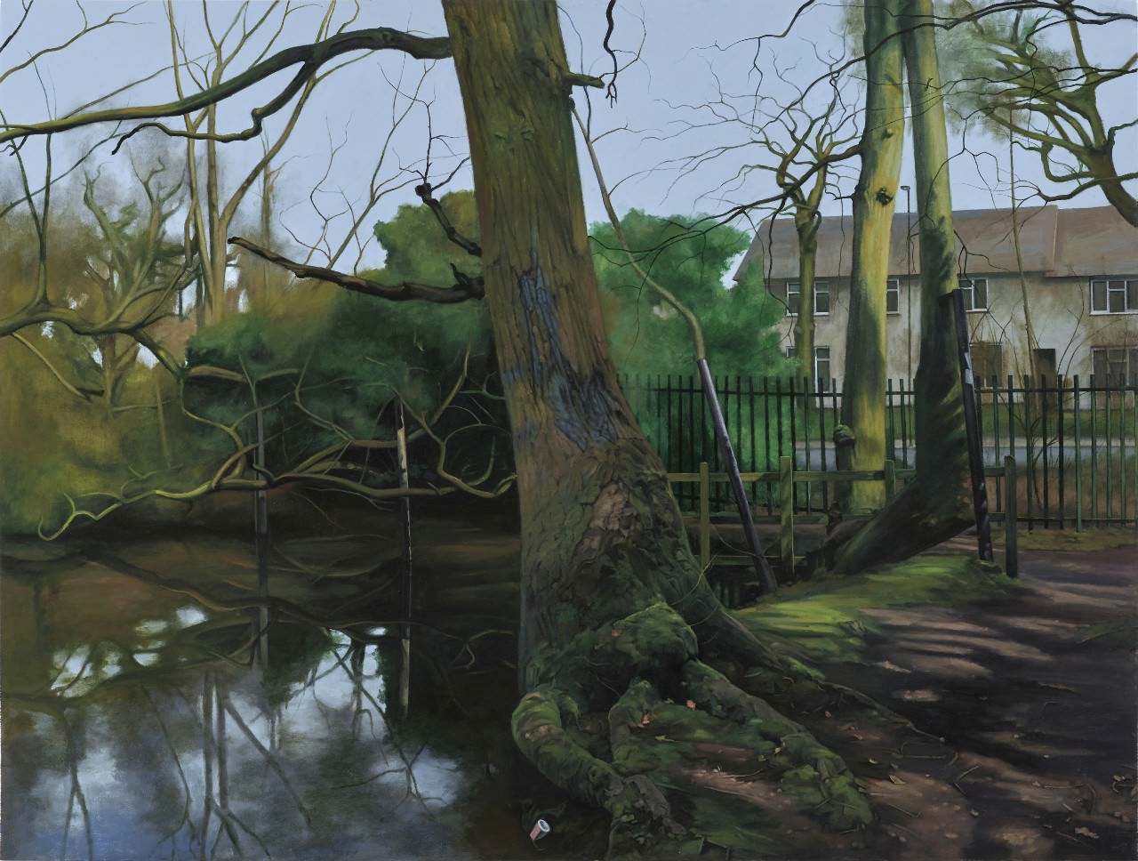 喬治.肖(George Shaw)出生成長於中英格蘭一個勞工階級住宅區,老家位在城市與森林交界處。因此,從市郊到林地的景觀轉變,一直是肖創作的靈感來源,也是他畫中標誌個人風格的場景原型。