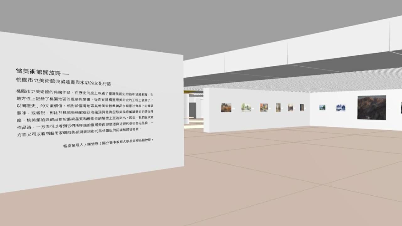兩檔展覽以現今桃美館基地─桃園市兒童美術館的展場作為虛擬場域,進而搭建線上3D展場,在虛擬空間具象化,觀者除了得以一窺策展計畫外,更可透過自主導覽瀏覽作品,並「駐足」畫作前閱讀作品說明,實際漫步於雲端展場。