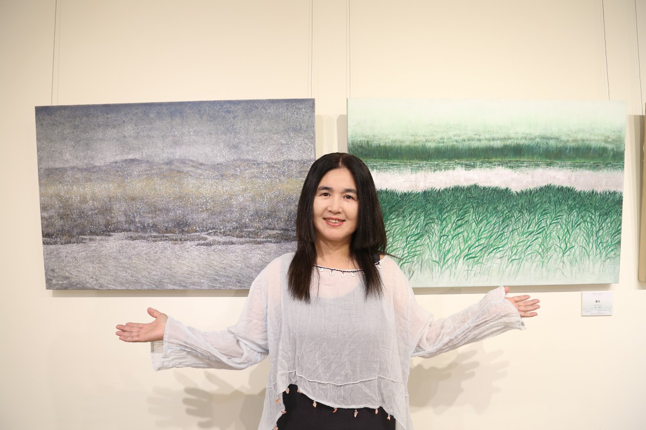 顧文華2009年接觸膠彩畫,二年內即榮獲大墩美展及中部美展獎項。旅行是她追尋心靈淨化與實踐自我的過程,將觸目所見的層巒山脈、水影幽微、廣袤荒漠、舟楫倒影等景象沈潛轉化,運用點膠運筆的雕塑切割、堆疊延展,完成一系列主題創作。
