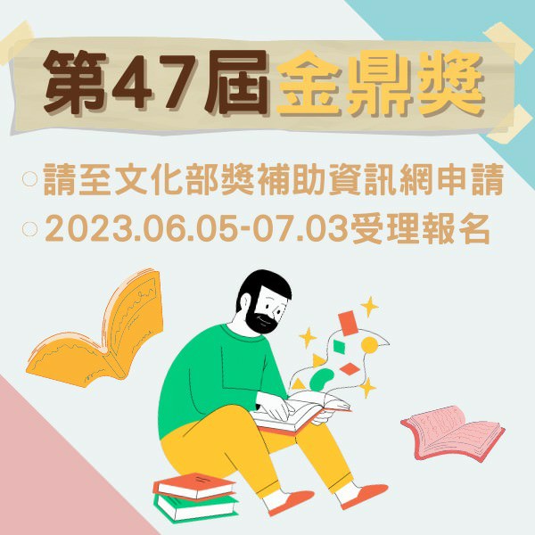 文化部舉辦第47屆金鼎獎,即日起至7月3日止受理報名,111年1月1日至12月31日期間出版發行之圖書、雜誌,以及電子書、有聲書等數位出版品皆可報名,本屆金鼎獎總獎金達新臺幣690萬元,歡迎各界踴躍參加。
