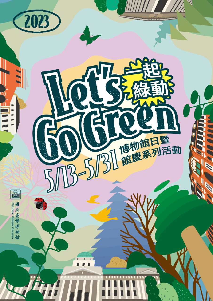 為歡慶2023年國際博物館日及國立臺灣博物館115年館慶,臺博館推出Let's Go Green一起「綠」動系列活動,除了5月18日到21日全館區開放免票參觀,即日起至5月底還有一連串結合環境教育的導覽、手作、繪本說故事、市集、吉祥物互動、電影優惠券贈票等多元活動,鼓勵大眾在參與過程中探索自我、豐富生活經驗,迎向永續健康的未來!